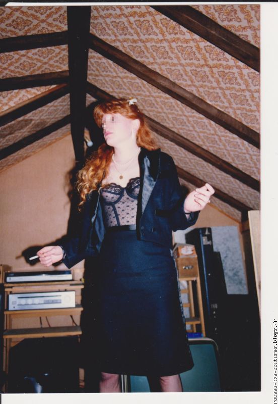 Sa jupe très près du corps et moulante laissait apparaître ses dessous en relief, ses jarretelles pointaient sous fine peau, ses jambes étaient gansées dans de fins ba s noirs, leurs coutures montaient le long de ses jambes.